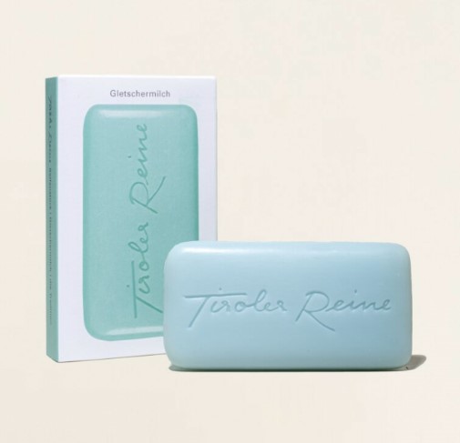In der Tiroler Reine Seife vereinen sich die Farbe der Gletschermilch, die in der Zeit der Schnee- und Eisschmelze die Bergbäche füllt, und der Duft aus Großmutters Zeiten.