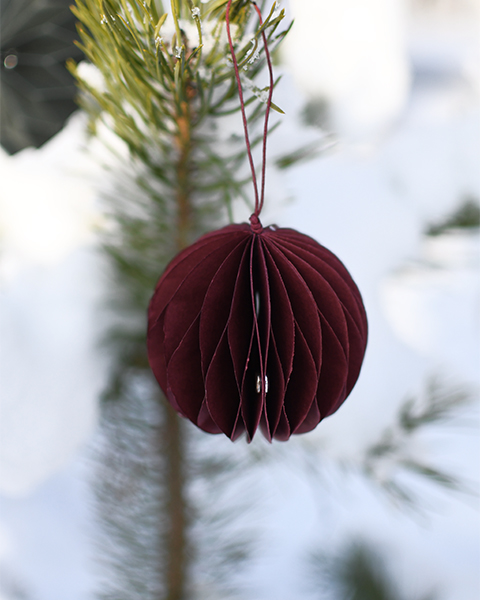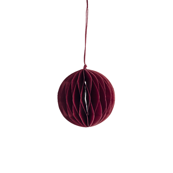 Die wunderschöne Papier-Kugel *BONA* rot kannst du an deinen Tannenbaum, an Zweige &