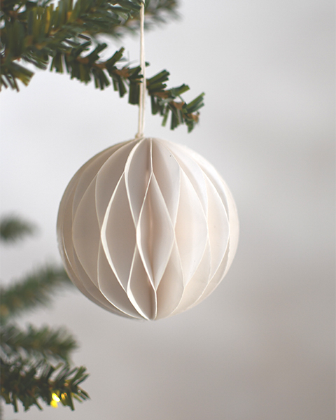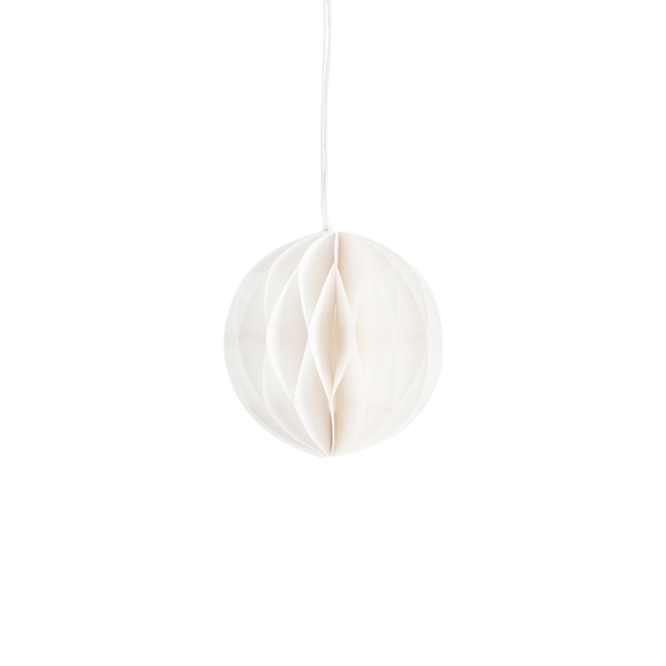 Die wunderschöne Papier-Kugel *BONA* weiß kannst du an deinen Tannenbaum, an Zweige &