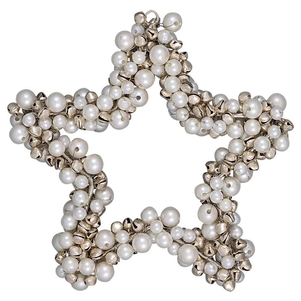Wundervoller Stern mit kleinen Kunststoff Perlen und silbernen Glöckchen.