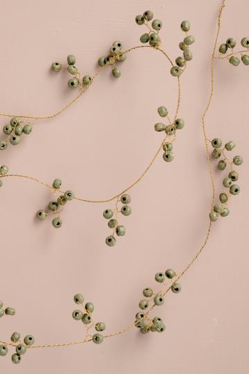 Das wundervolle Band mit Holzperlen in staubig grün,