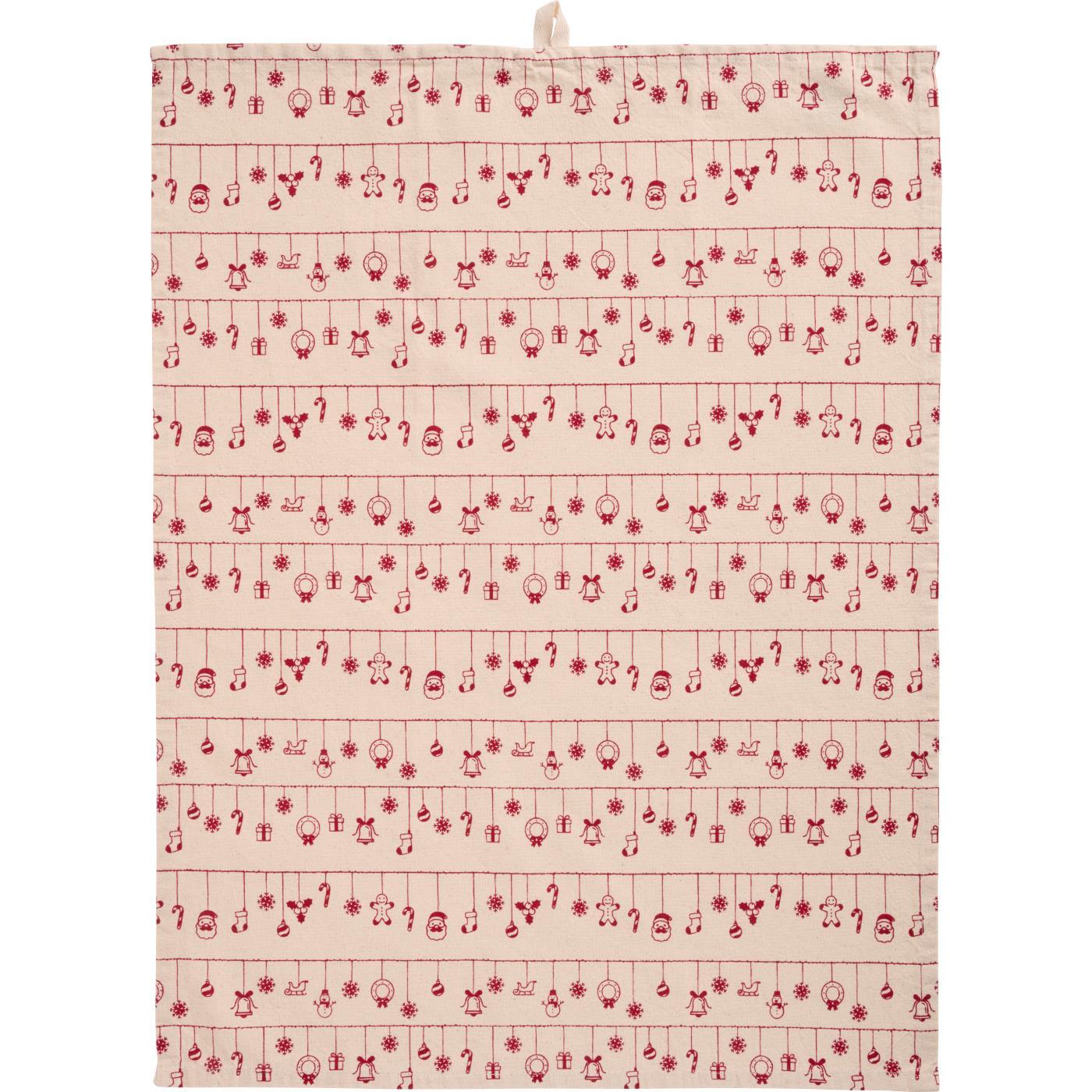 Geschirrtuch *Hollie* rot mit Weihnachtsschmuck Spaß, auch als kleines Mitteldeckchen für