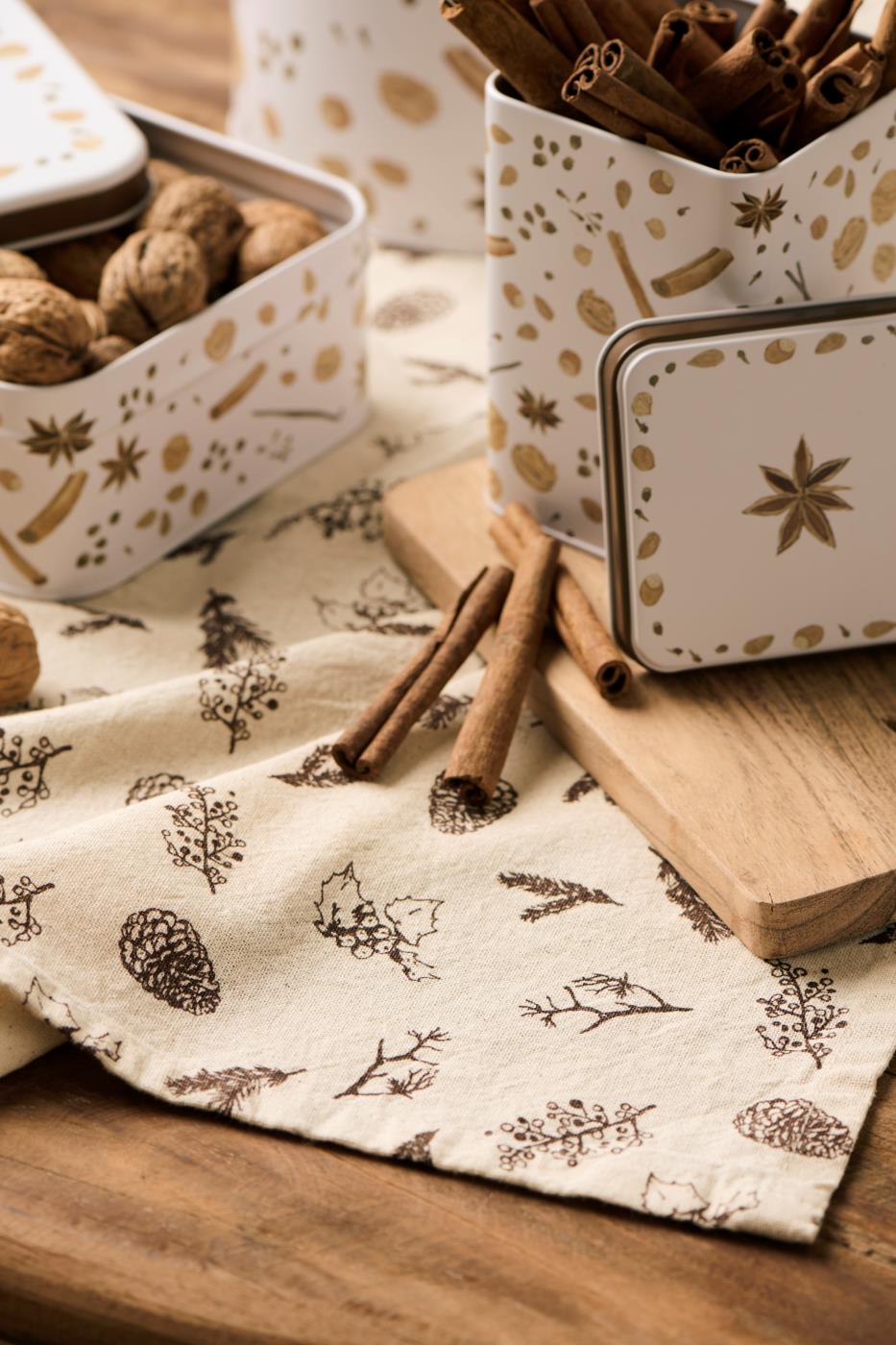 Geschirrtuch *Jolly* braun mit Zapfen und Zweigen Spaß, auch als kleines Mitteldeckchen für