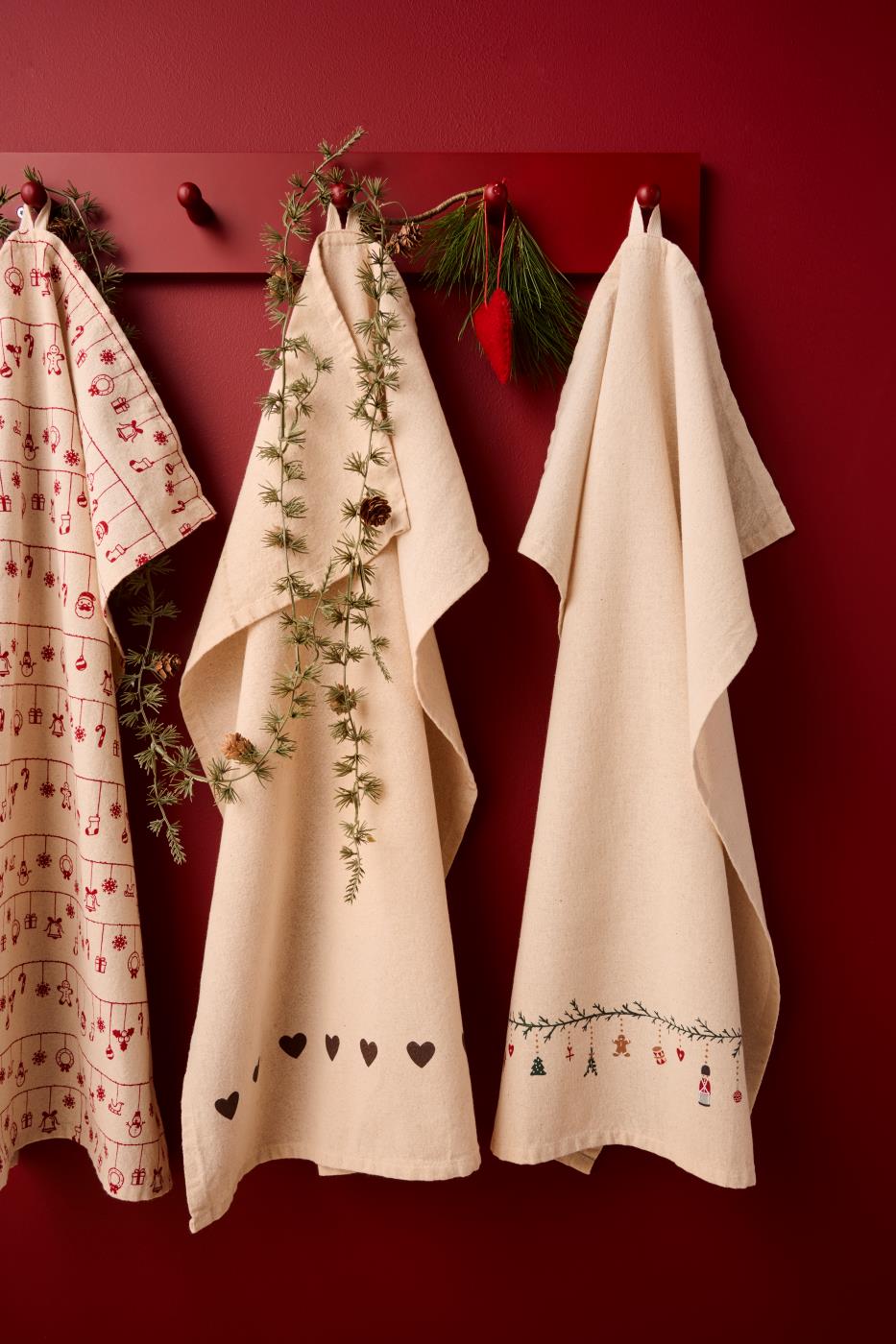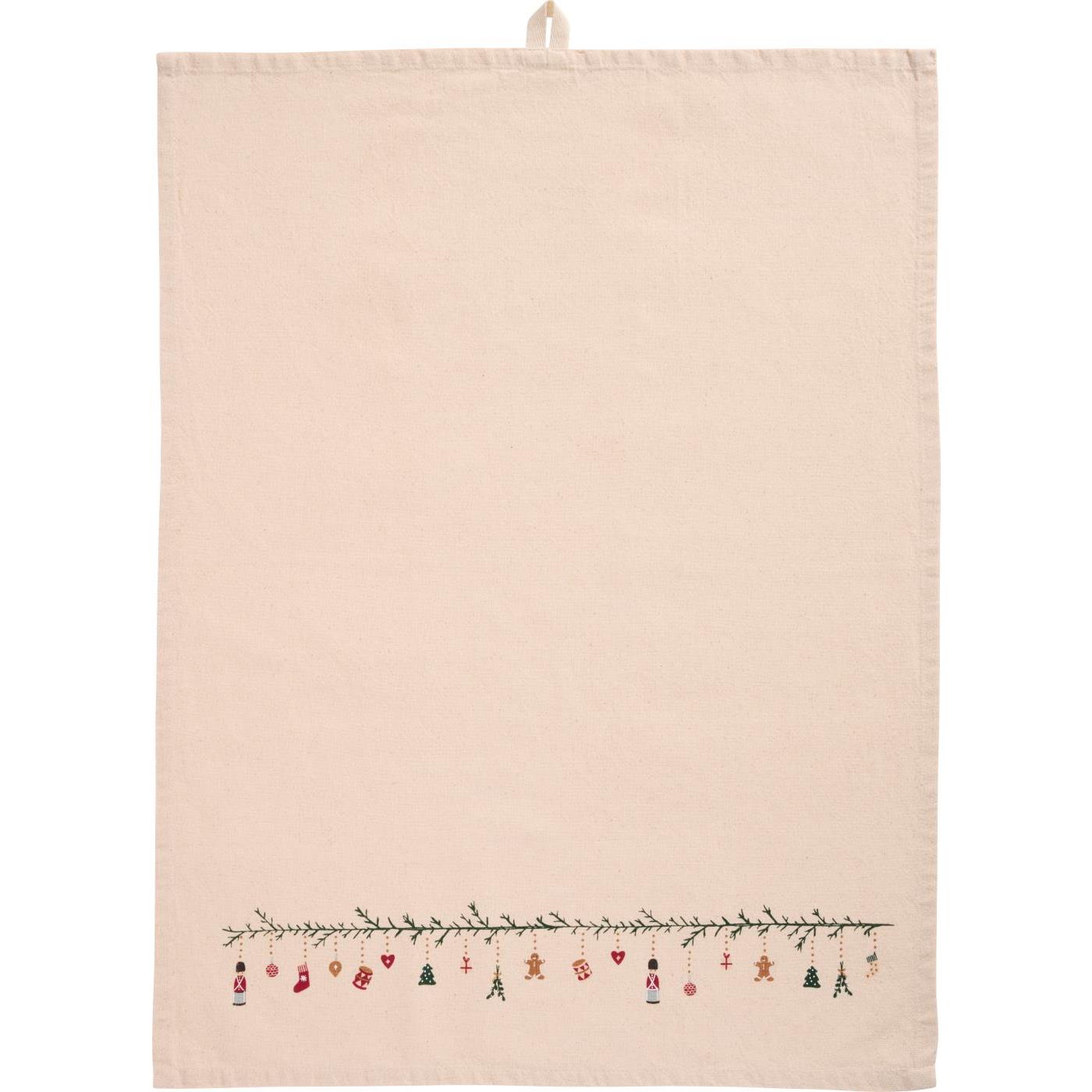Geschirrtuch *Julius* natur mit Weihnachtsgirlande Spaß, auch als kleines Mitteldeckchen für