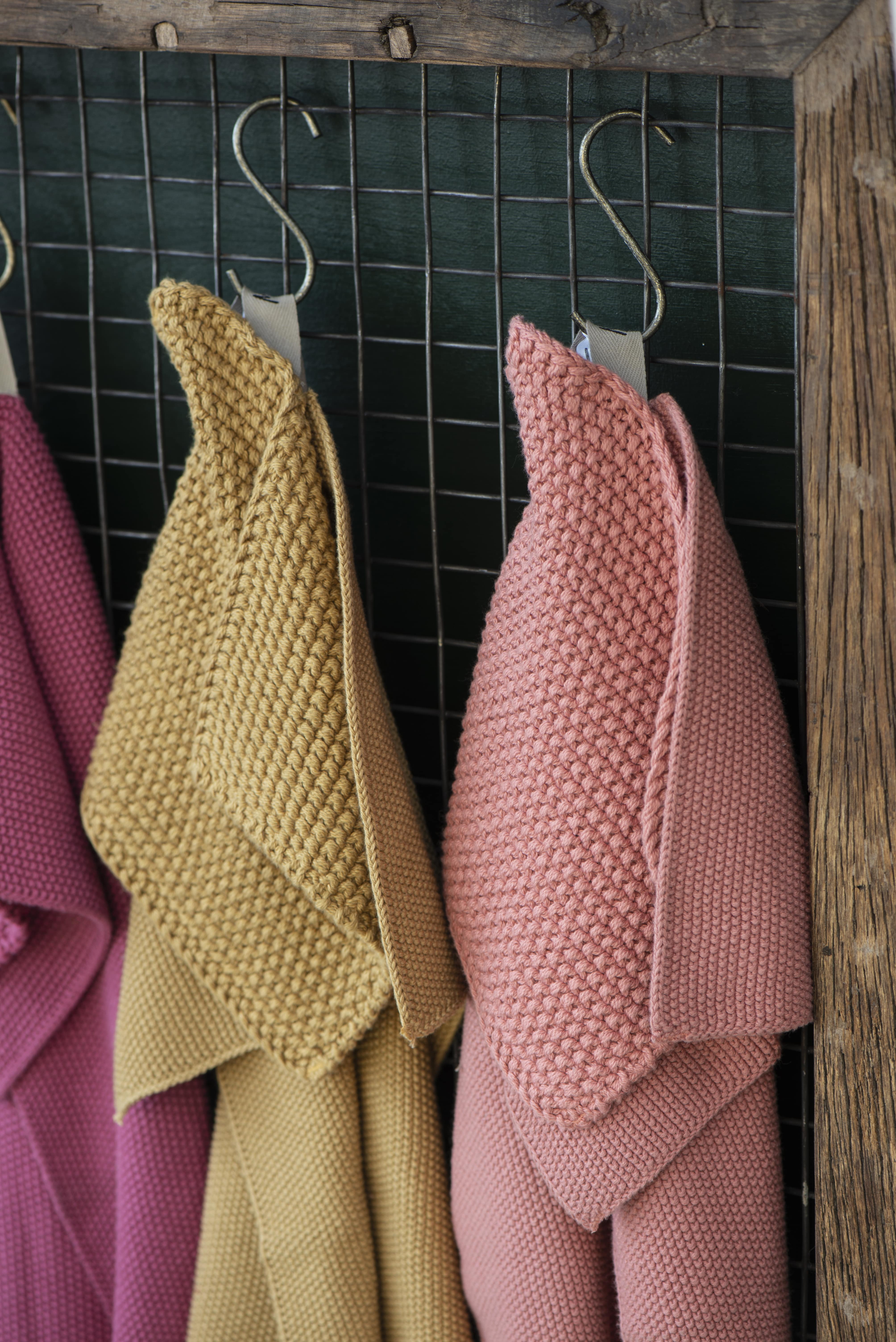 Das gestrickte Mynte Handtuch in *rosa* bringt nicht nur beim