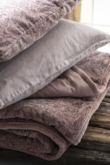 Der zartrosane Kissenbezug aus Leinen