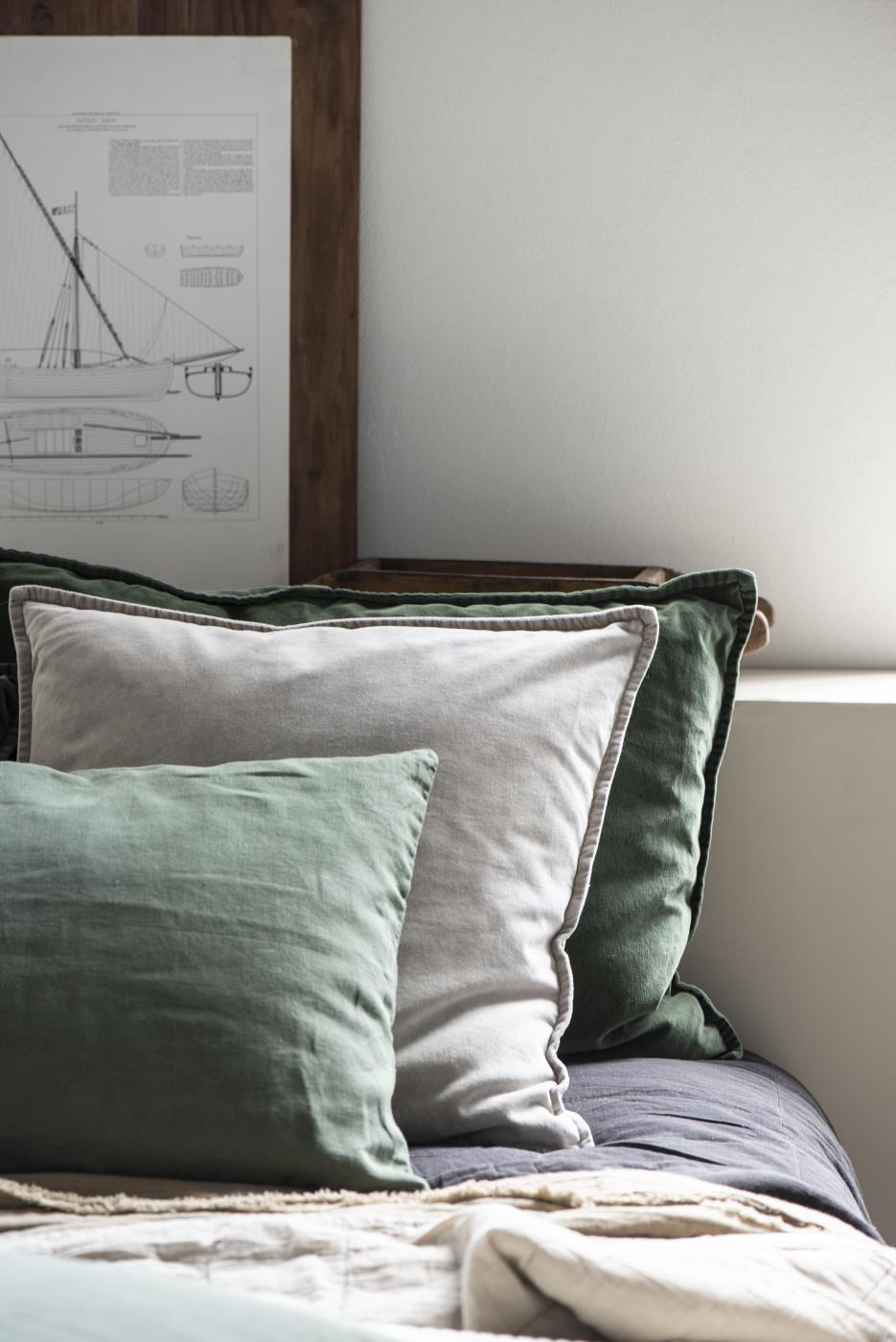 Der edle Samtkissenbezug in fog macht deine Lieblinglingsecke