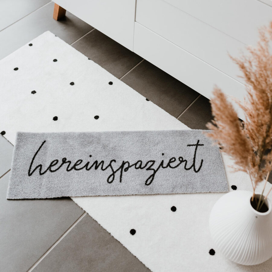 Die kleine waschbare Fußmatte *Hereinspaziert* aus Polyamid zaubert deinen Gästen garantiert ein Lächeln ins Gesicht!
