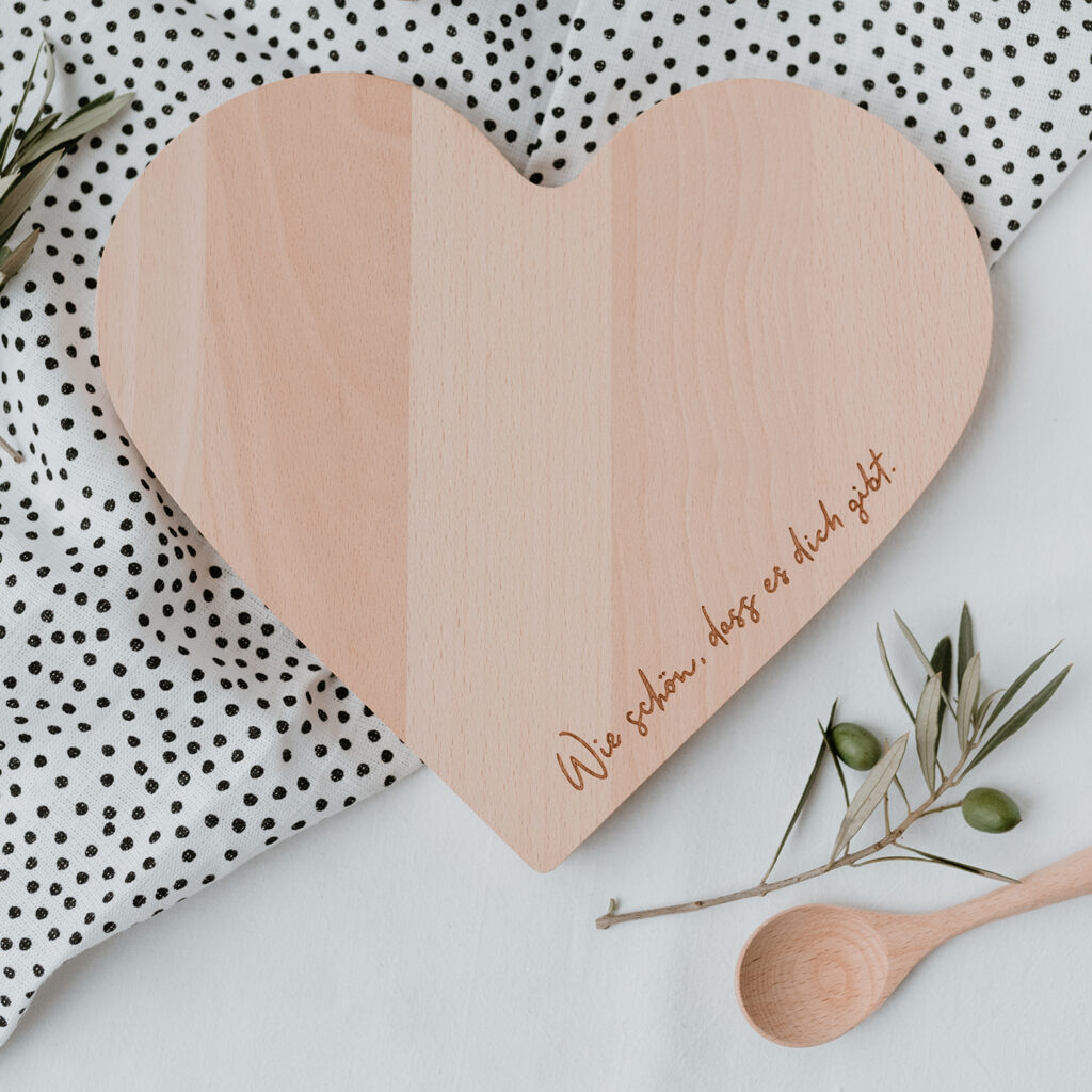 Für die Detailverliebten unter euch wurde auf der Vorderseite ein kleines Herz per Laser eingraviert. Das Frühstücksbrettchen Herz hat auf der Rückseite ein kleines Eulenschnitt-Logo.