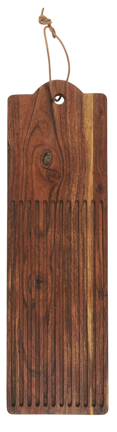 Auf dem hübschen Rillen-Schneidebrett aus Akazienholz mit Lederband