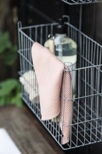 Der gestrickte Mynte Spüllappen in *faded rose* bringt nicht nur beim