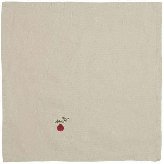 Die wunderschöne Stoffserviette bestickt mit Weihnachtskugel an Tannenzweig sind toll
