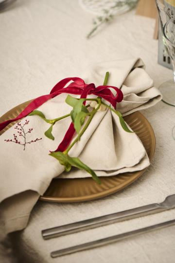 Die wunderschöne Stoffserviette bestickt mit Winterbeerenzweig sind toll
