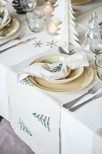 Der edle Tischläufer aus Baumwolle ist liebevoll mit kleinen