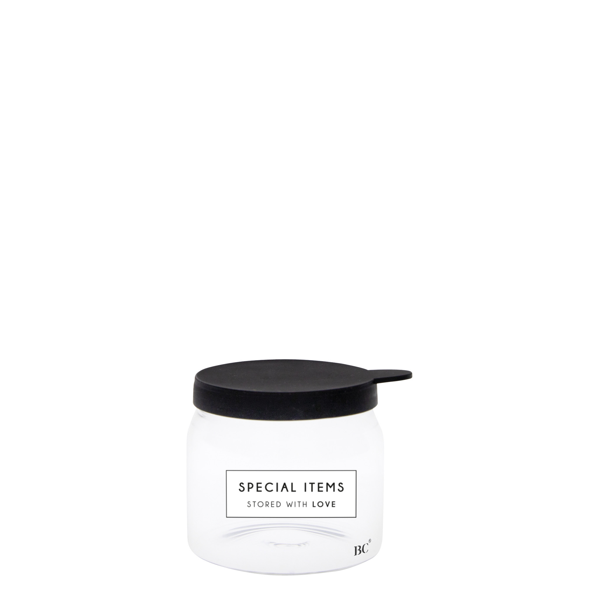 Das traumhaftschöne Aufbewahrungsglas mit Silikondeckel in schwarz