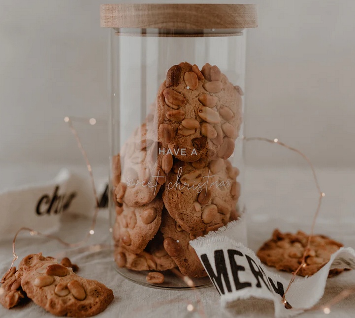 Das wunderschöne und praktische Vorratsglas Sweet Christmas 19 cm aus Borosilikatglas mit Akazienholz Deckel, bewahrt alle deine Vorräte in schönster Form auf