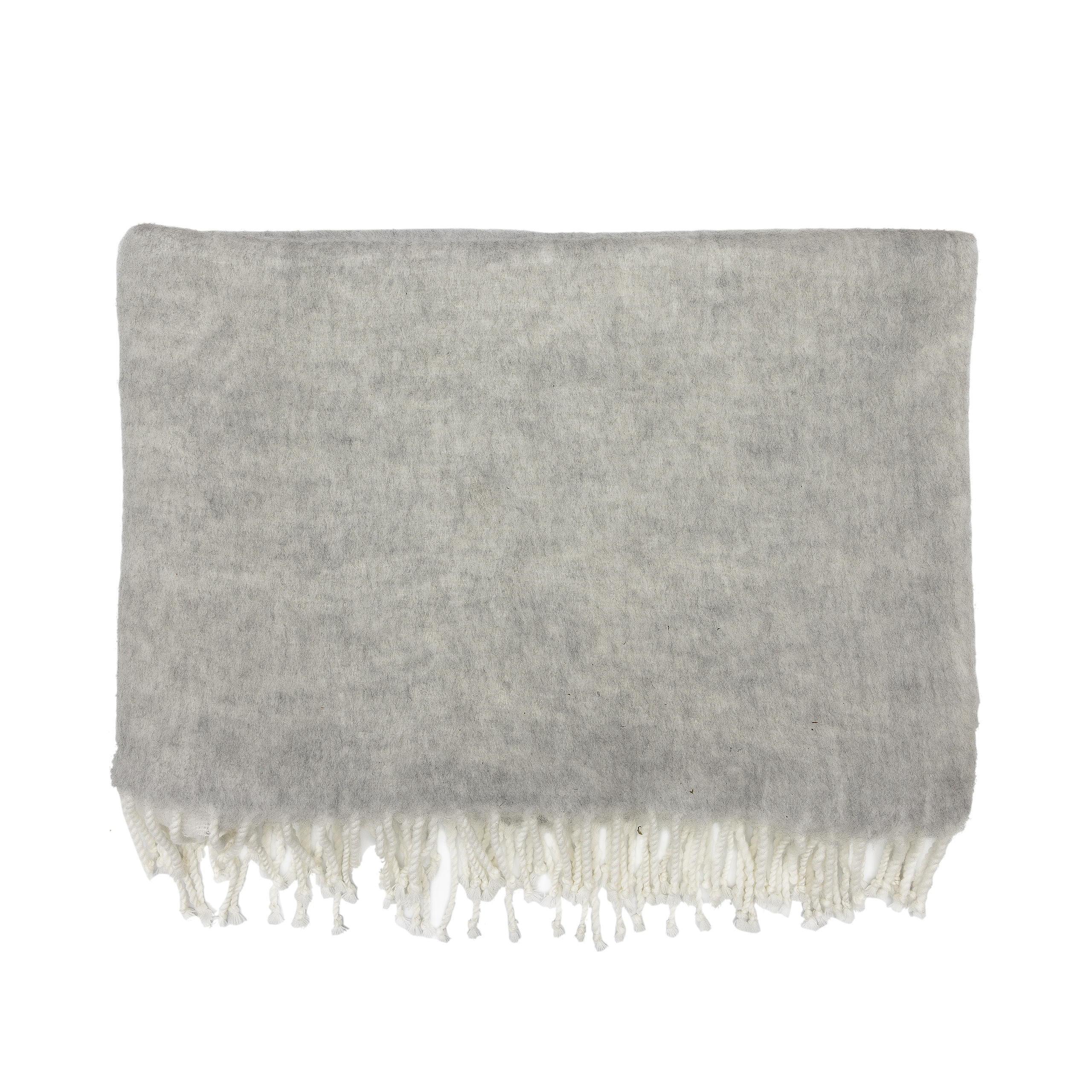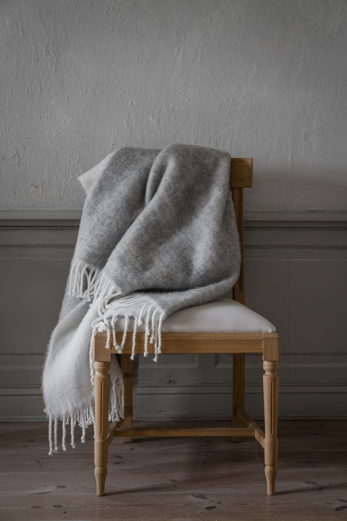 Die ERNST-Wolldecke hüllt dich in wohltuende Wärme und Ruhe – auf der einen Seite in sanftem Grau, auf der anderen in klassischem Weiß.